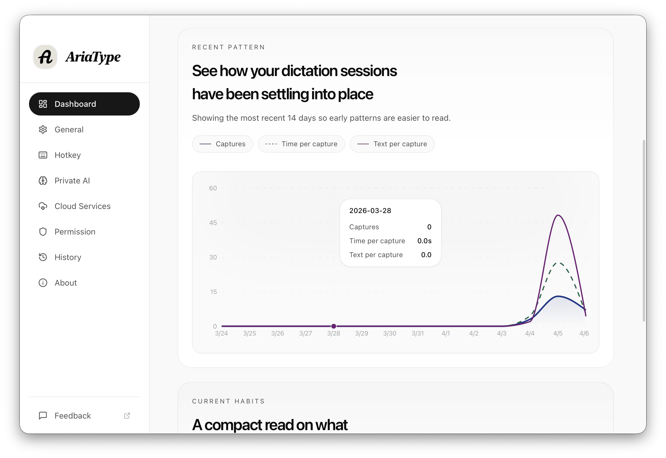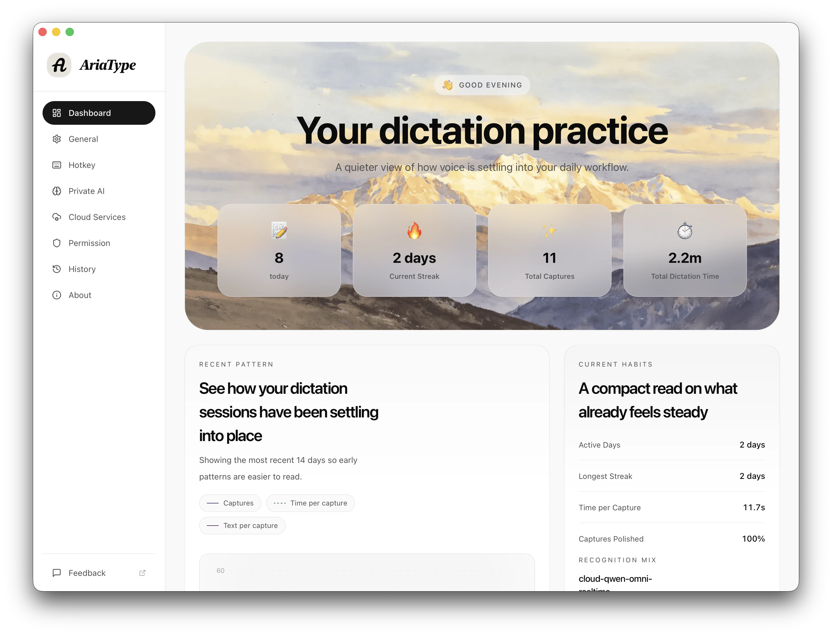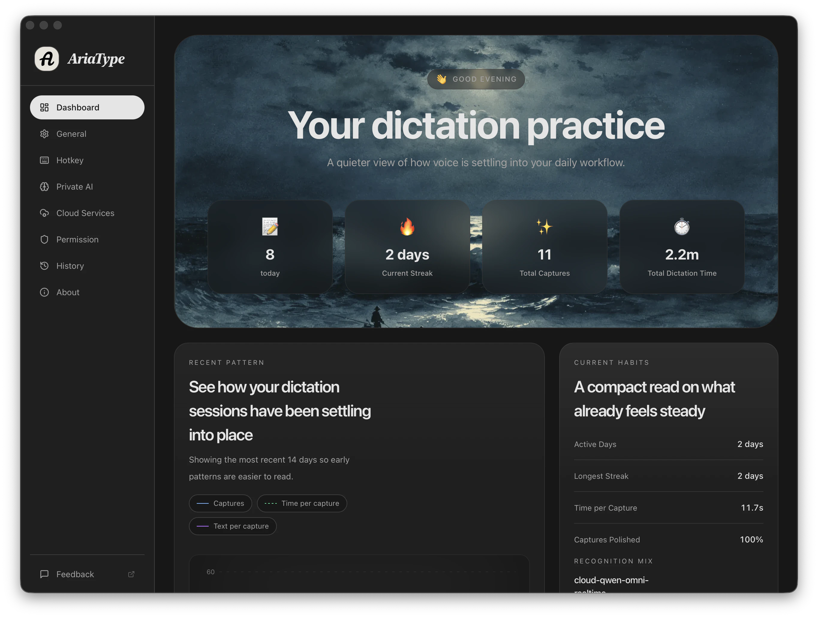 AriaType is an open-source voice-to-text app for macOS that lets you speak naturally and type anywhere with a hotkey. It works right at your cursor, supports local-first processing for better privacy, and helps you turn speech into polished text without breaking your flow.