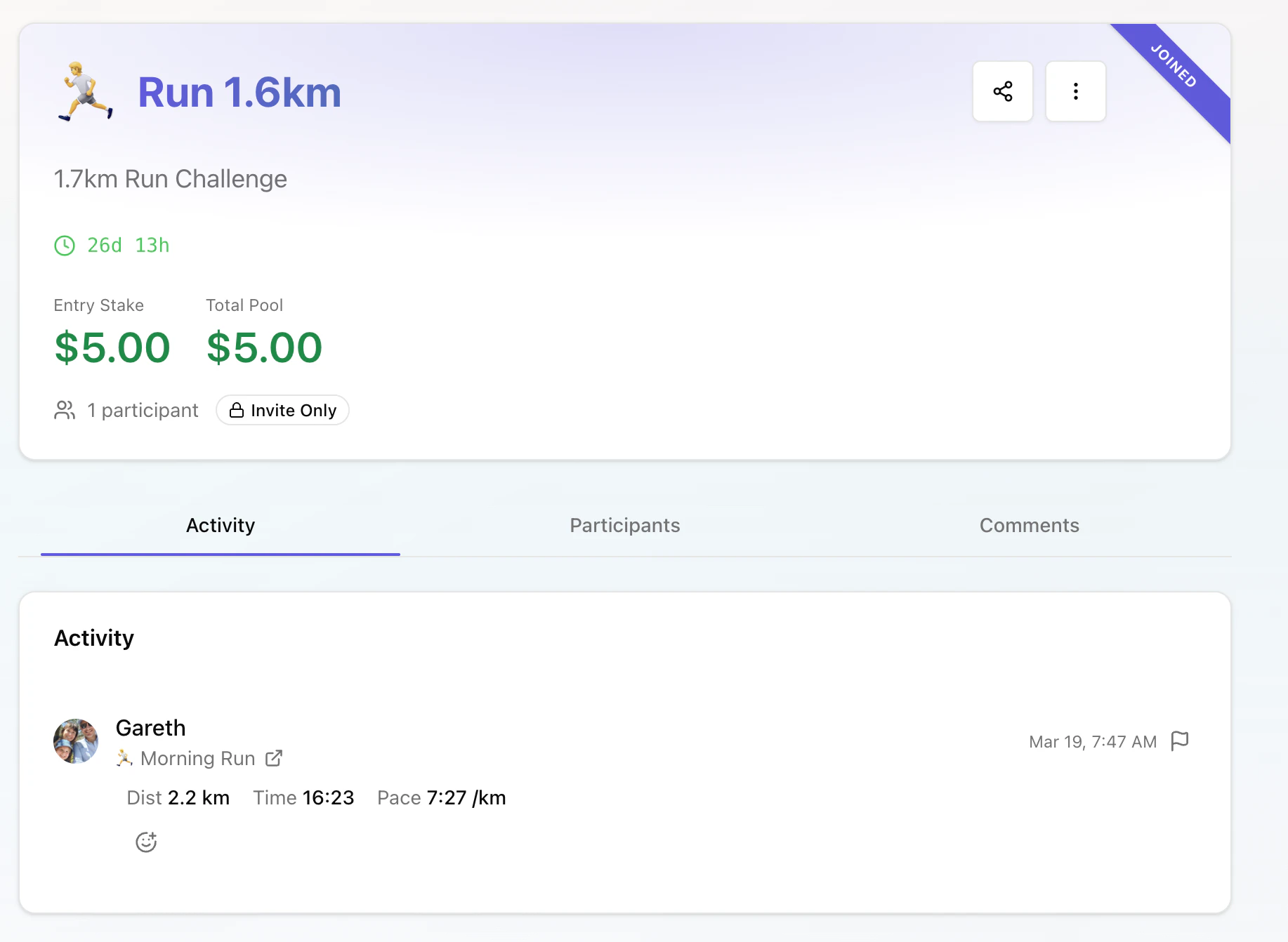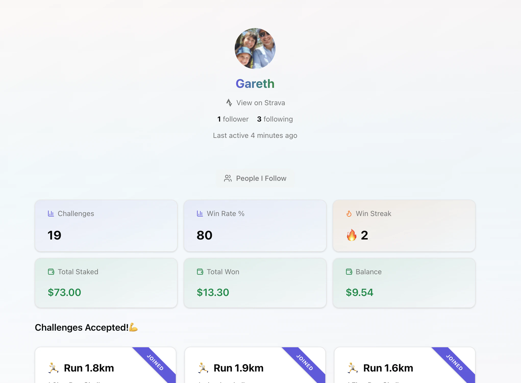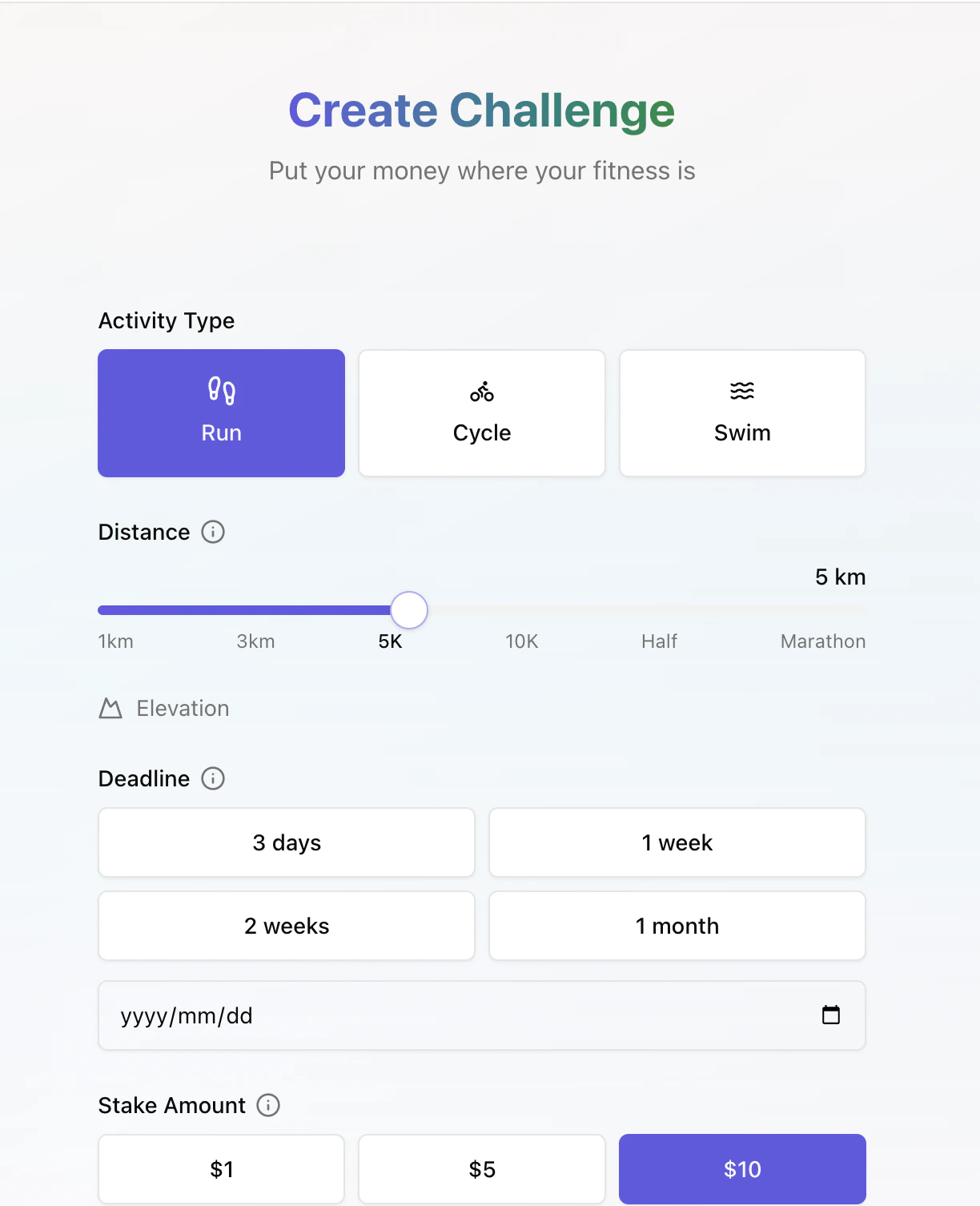 Stake real money on fitness challenges. Complete activities on Strava. Winners take the pot.