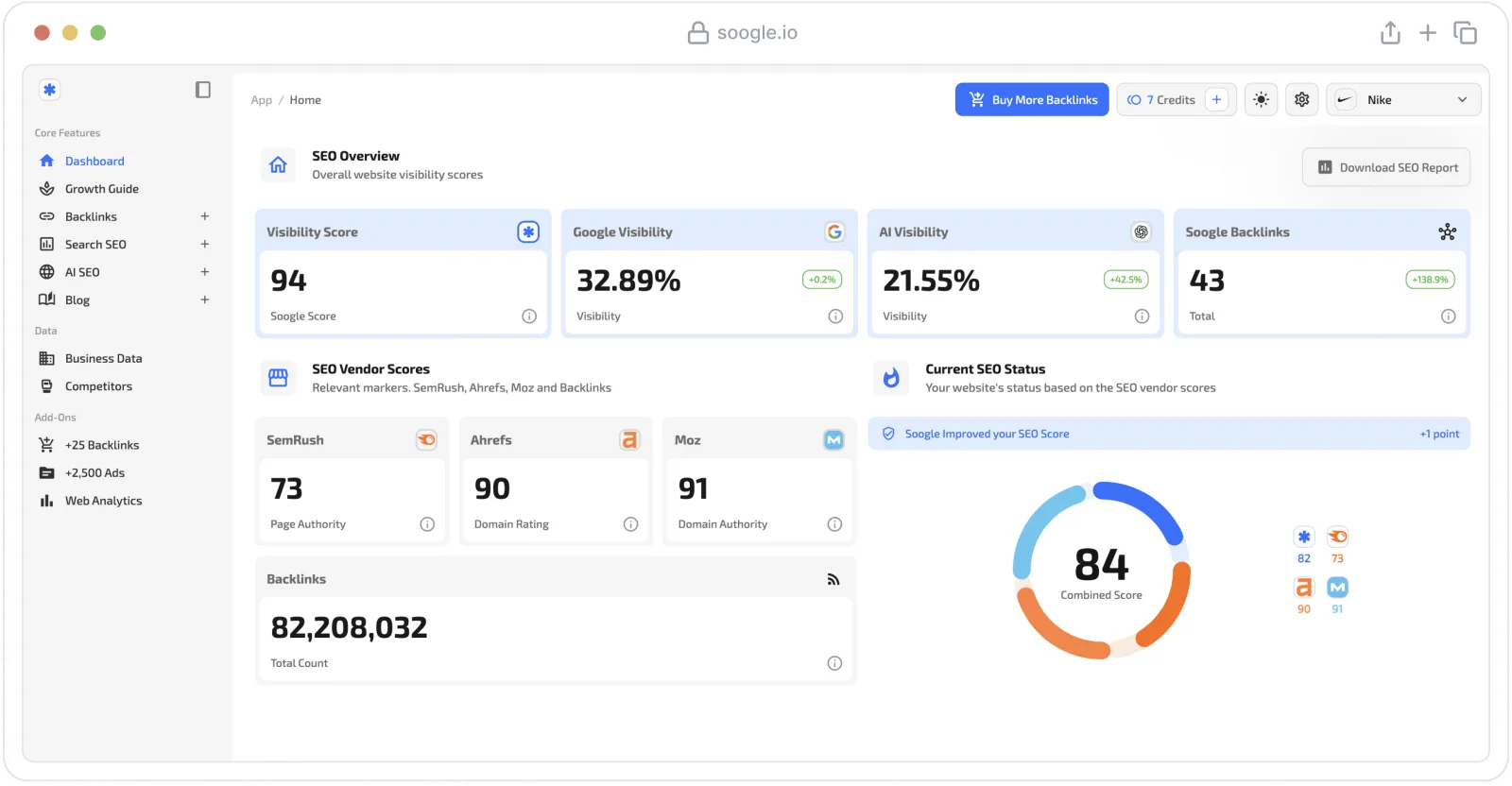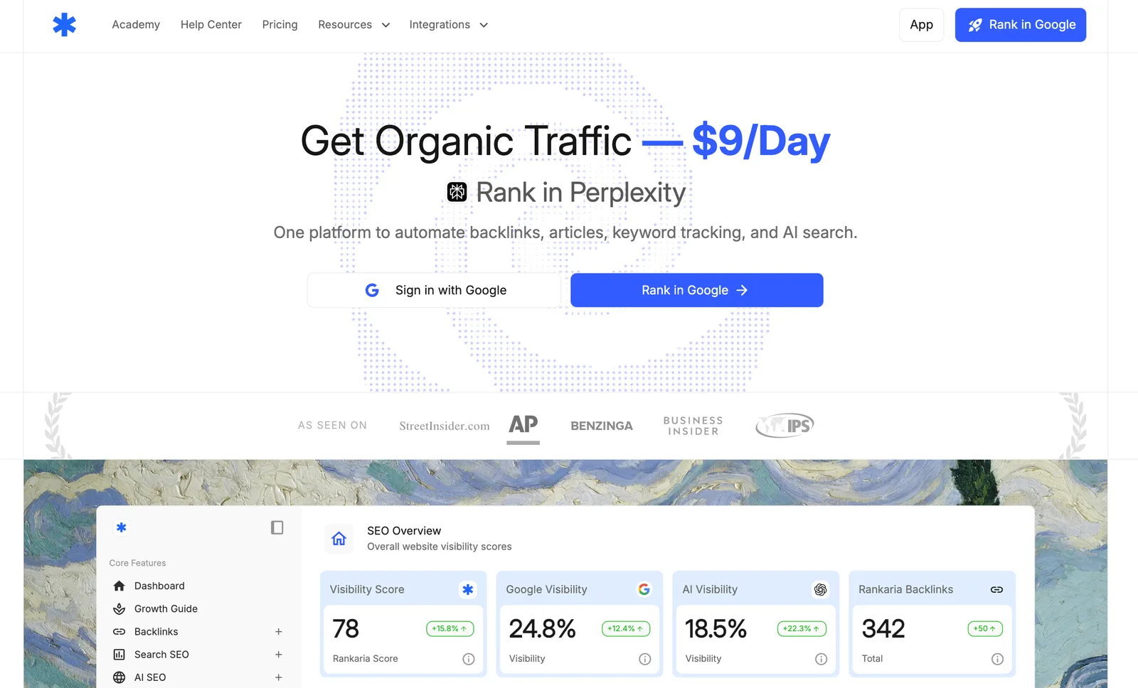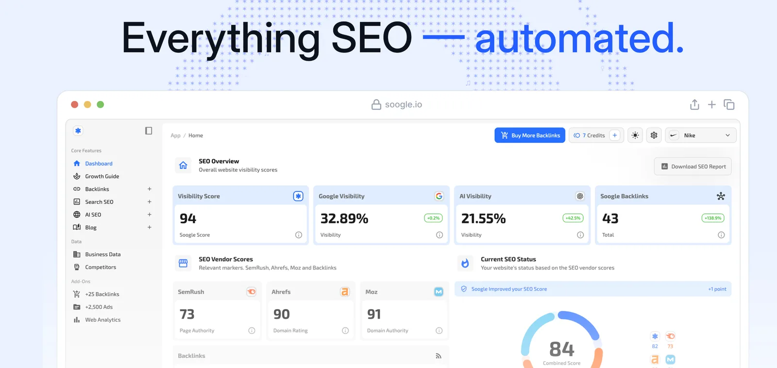 One platform to automate backlinks, articles, keyword tracking, and AI search.